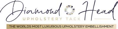 White Diamond decorative upholstery nails are made from genuine Bohemian crystal, in twin rows that sparkle and glitter like stars. This handmade custom headboard celebrates a sophisticated look that is adorably retro-chic.